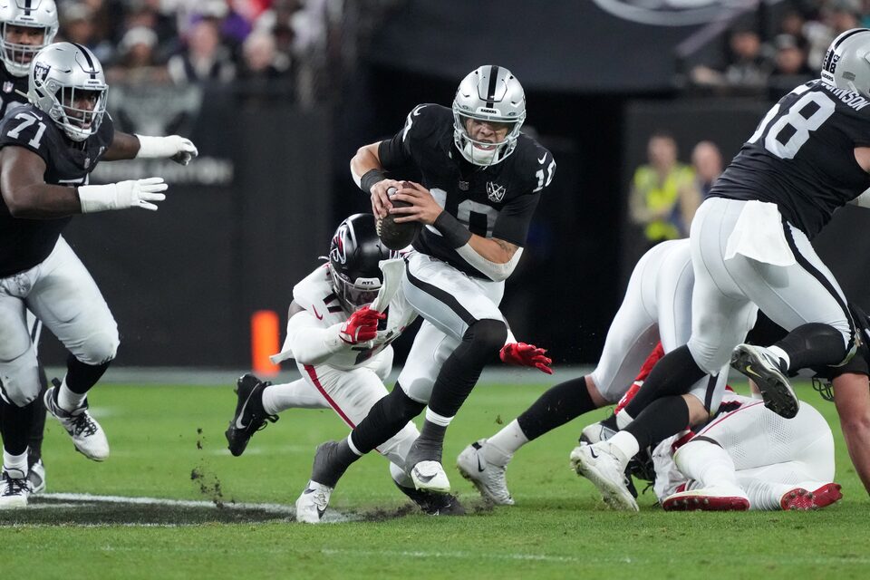 Desmond Ridder, who was Atlanta’s starting quarterback last season, was 23 of 39 for 208 yards, one touchdown and two interceptions for the Raiders (2-12) while starting in place of injured Aidan O’Connell (knee).